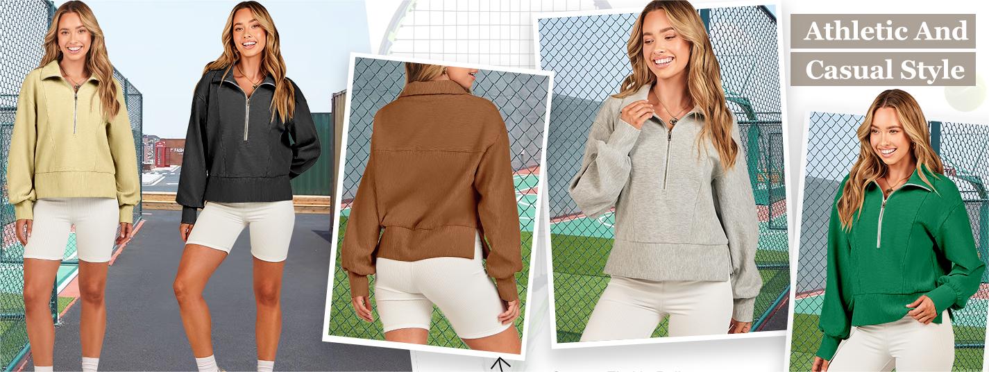 This is a half-zip pullover hoodie for women with an casual style, quarter zipper, drop shoulder collar, slit side, and zip long sleeve Ribbed Knit Sweater design. It is perfect for fall outfits and winter fashion clothes.